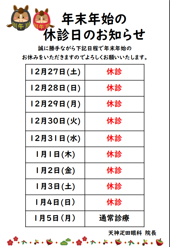 ※火曜・金曜:午後14:00-16:00は院長手術です。その後、外来診療を行います。